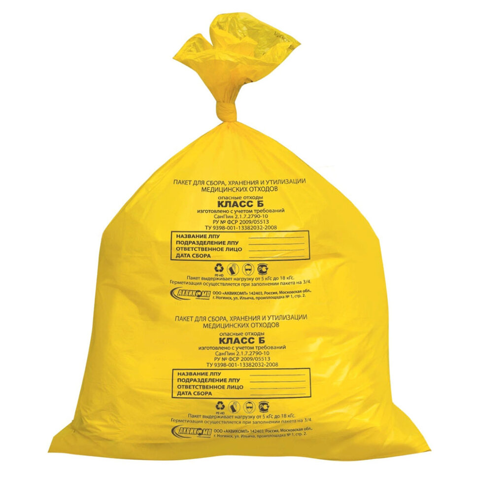 Пакет одноразовый полиэтиленовый для сбора и хранения медицинских отходов класса Б, 600*1000 мм (цвет желтый)10,30 ₽В корзину